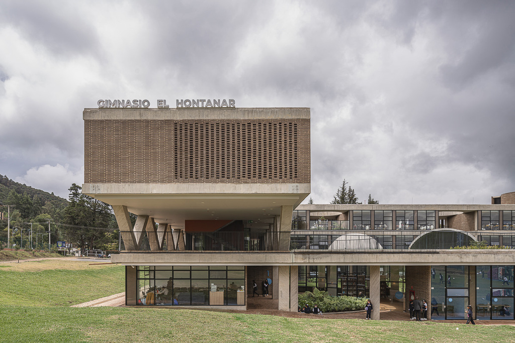 El Bloque IB del Gimnasio Hontanar se configura como un volumen lineal en forma de L, articulado mediante una topografía artificial que contiene la biblioteca y cuya cubierta funciona como una plataforma verde accesible. Sobre esta se disponen lucernarios esféricos truncados que garantizan el ingreso de luz natural cenital y aportan una identidad formal distintiva al conjunto.